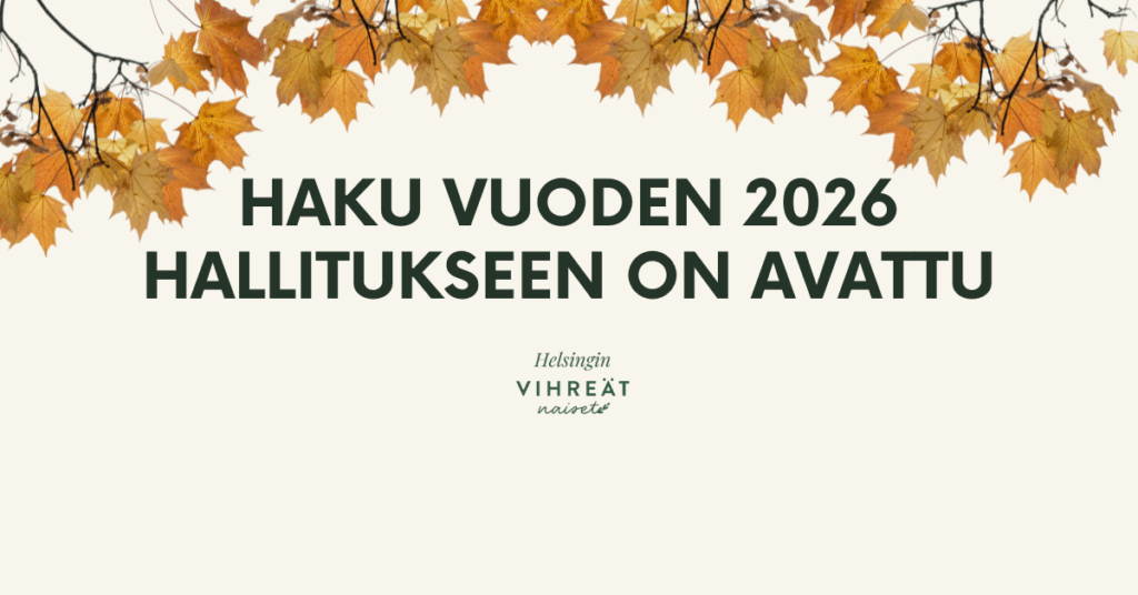 Helsingin Vihreät Naiset on feministinen yhteisö ja poliittinen koti, joka tarjoaa mahdollisuuksia ja inspiraatiota tasa-arvoisemman maailman rakentamiseksi. Meille on tervetullut jokainen naiseksi itsensä kokeva, jolle on tärkeää tukea tasa-arvoa ja ympäristöä iästä, elämäntilanteesta tai muusta tekijästä riippumatta. Meillä on lämminhenkinen porukka, johon toivotamme uudet jäsenet tervetulleiksi! Jos haluat olla mukana jossain tietyssä asiassa, kuten vaikka tapahtumien järjestämisessä, olethan meihin rohkeasti yhteydessä.