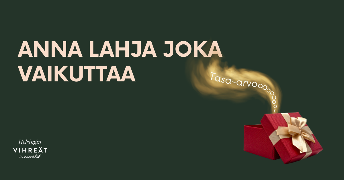 Lahjoittamalla Helsingin Vihreille Naisille lahjoitat tulevaisuudelle, jossa tasa-arvo ja vihreä tulevaisuus määräävät politiikan suuntaa.